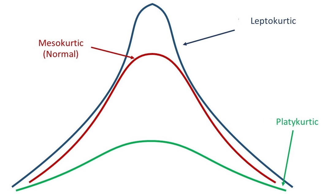 \(\gamma_2=0 \space or \space \beta_2=3) \rightarrow\) Mesokurtik \(\gamma_2\gt0 \space or \space \beta_2 \gt 3) \rightarrow\) Leptokurtik \(\gamma_2\lt0 \space or \space \beta_2\lt3) \rightarrow\) Platykurtik